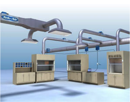VAV系統是一種整體建筑通風系統,其中包含傳感器,可根據窗扇位置調節排氣和供氣(圖片由Tek-Air提供)。例如,如果一個人在通風櫥里完成了他們當天的工作,并且通風櫥有一個VAV系統,則關閉窗扇會啟動一個自動(和安全)的響應,關閉通向通風櫥排氣的閥門,減少回火的空氣量。它還向供氣發送信號,告訴它調低進入實驗室的空氣量。通過這個動作,調節和耗盡的空氣量都降低了; 因此,當窗扇降低時,實驗室可以節省能源!